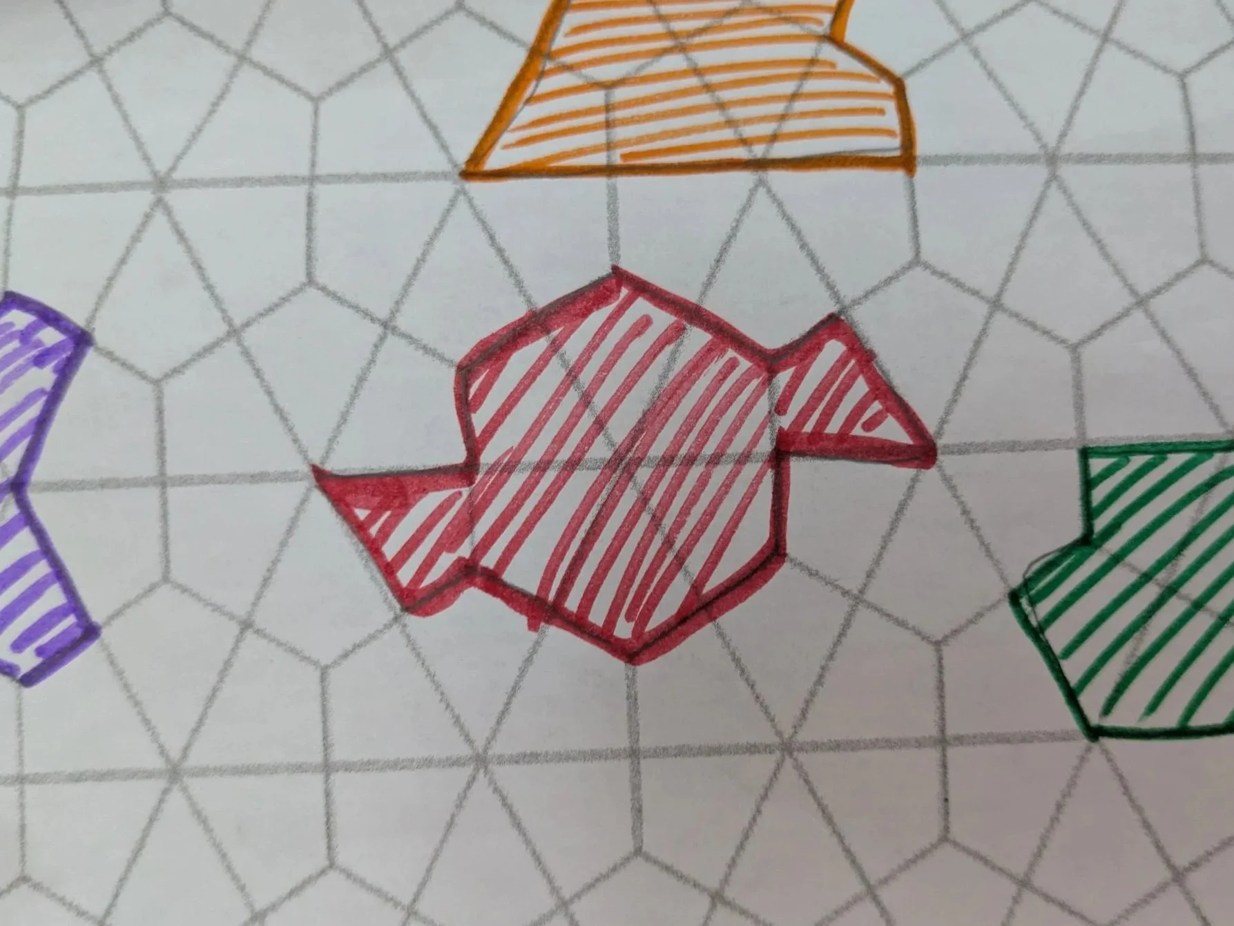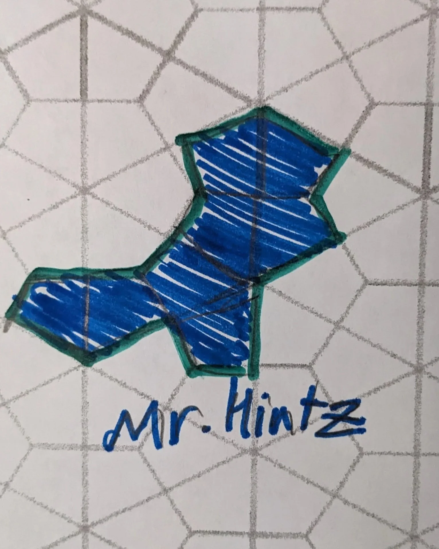 Back in 2024 I started the school year by asking all my students from kinder through 8th grade the same question. It was inspired by the “Hat Tile” created by David Smith. It is a polygon made of congruent kites within a grid of hexagons. More significantly mathematically, it is an “Aperiodic Monotile” meaning it can cover a 2 dimensional plane in a pattern that never repeats. I shared this short video about it.